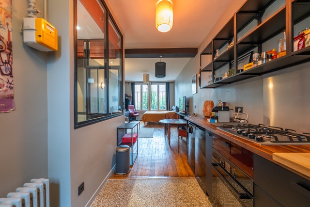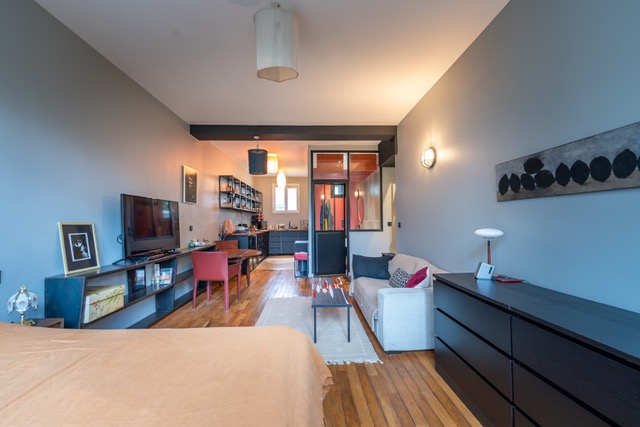 Quartier Daguerre, grand studio atypique de 42 m² situé rue Froidevaux dans le 14ᵉ arrondissement. Entièrement rénové en 2021 dans un esprit Loft, avec son parquet d’origine et ses matériaux nobles, il offre une vaste pièce à vivre aux volumes généreux avec sa cuisine équipée ouverte, une belle salle de bain avec verrière, suivi de ses toilettes et buanderie. Une cave complète ce bien. Son emplacement est un atout majeur, à seulement cinquante mètres de la rue Daguerre, connue pour son ambiance commerçante et conviviale. Ce secteur très recherché propose de nombreux commerces, restaurants et services de proximité. La desserte est excellente grâce à la proximité des stations Denfert-Rochereau (métros lignes 4 et 6, RER B) et Gaîté (ligne 13).